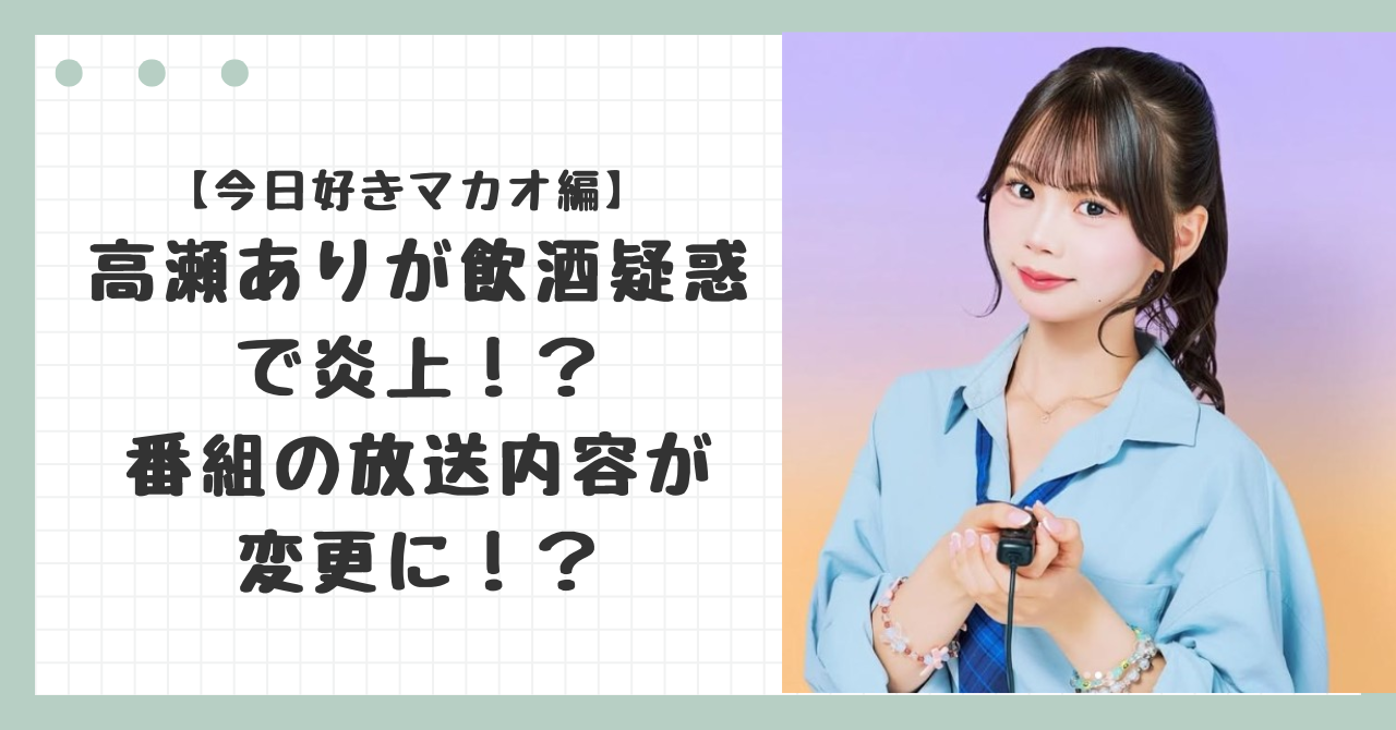 【今日好きマカオ編】 高瀬ありが飲酒疑惑で炎上!?番組の放送内容が変更に!?